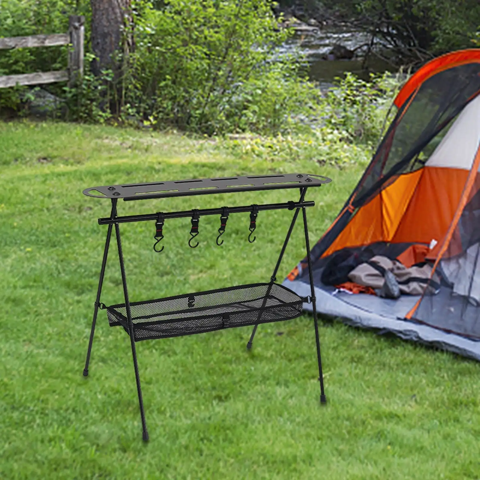 Keep your camping area clean and organized with the Camping Storage Net Stand, a lightweight and versatile storage solution for all your outdoor cooking and gear needs.